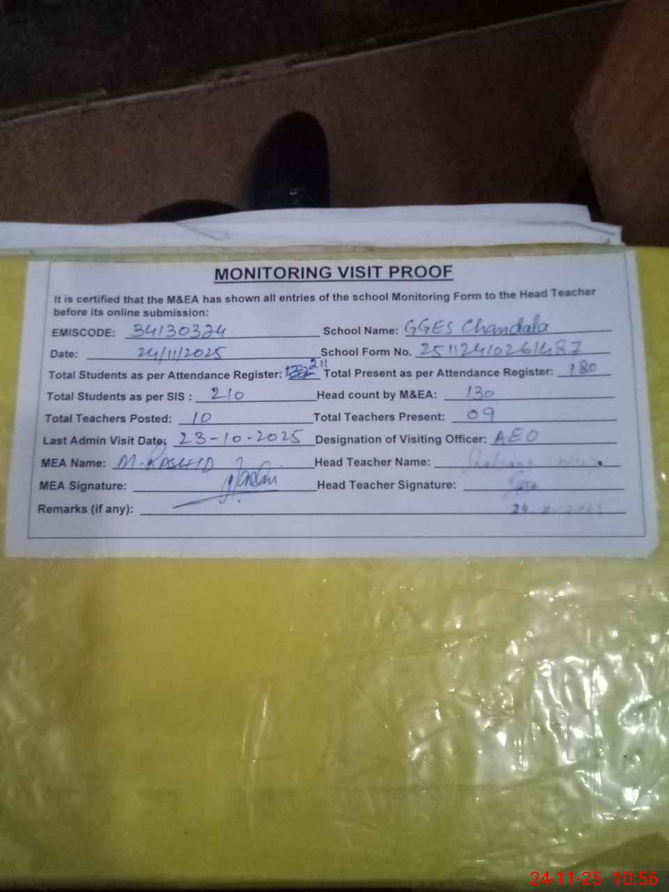 | EMIS Code: 34130324 | Name of School: GGES CHANDALA | |||
