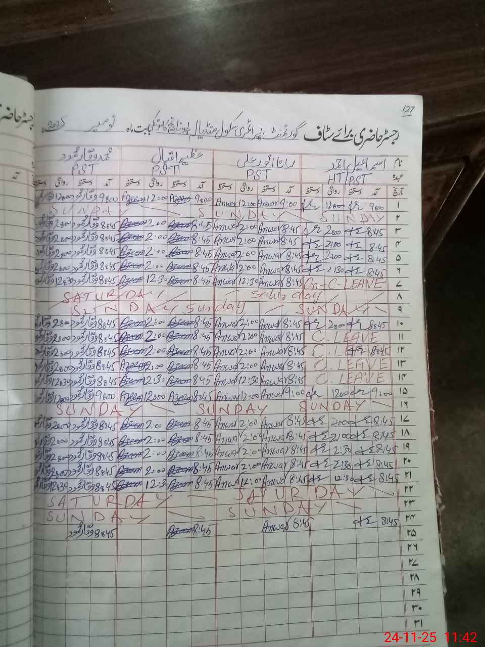 | CNIC | Full Name | Designation | R/C | Absence During Last Calender Month |