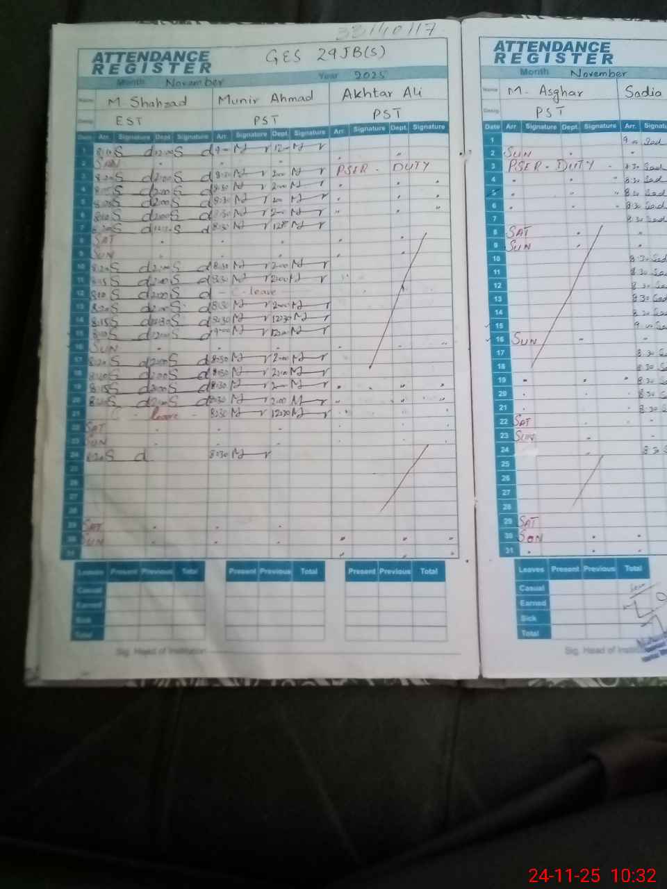 | Leave | Duty | Absent | Maternity | Medical | Ex- Pak |