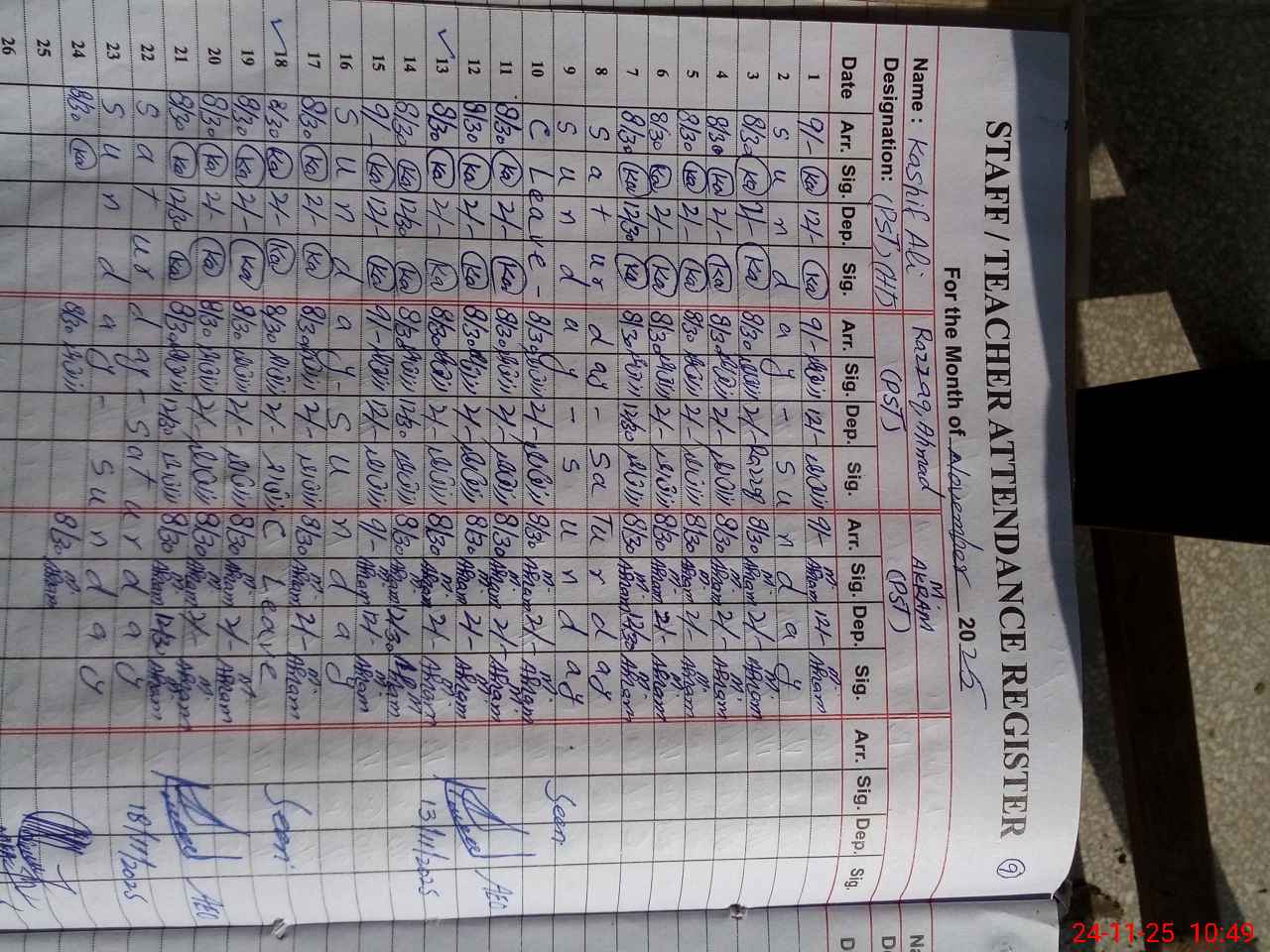 | Name: Ka**** Al**** Designation: (School Headmaster's/Headmistress's) PST Phone/Cell Number: 03**** |