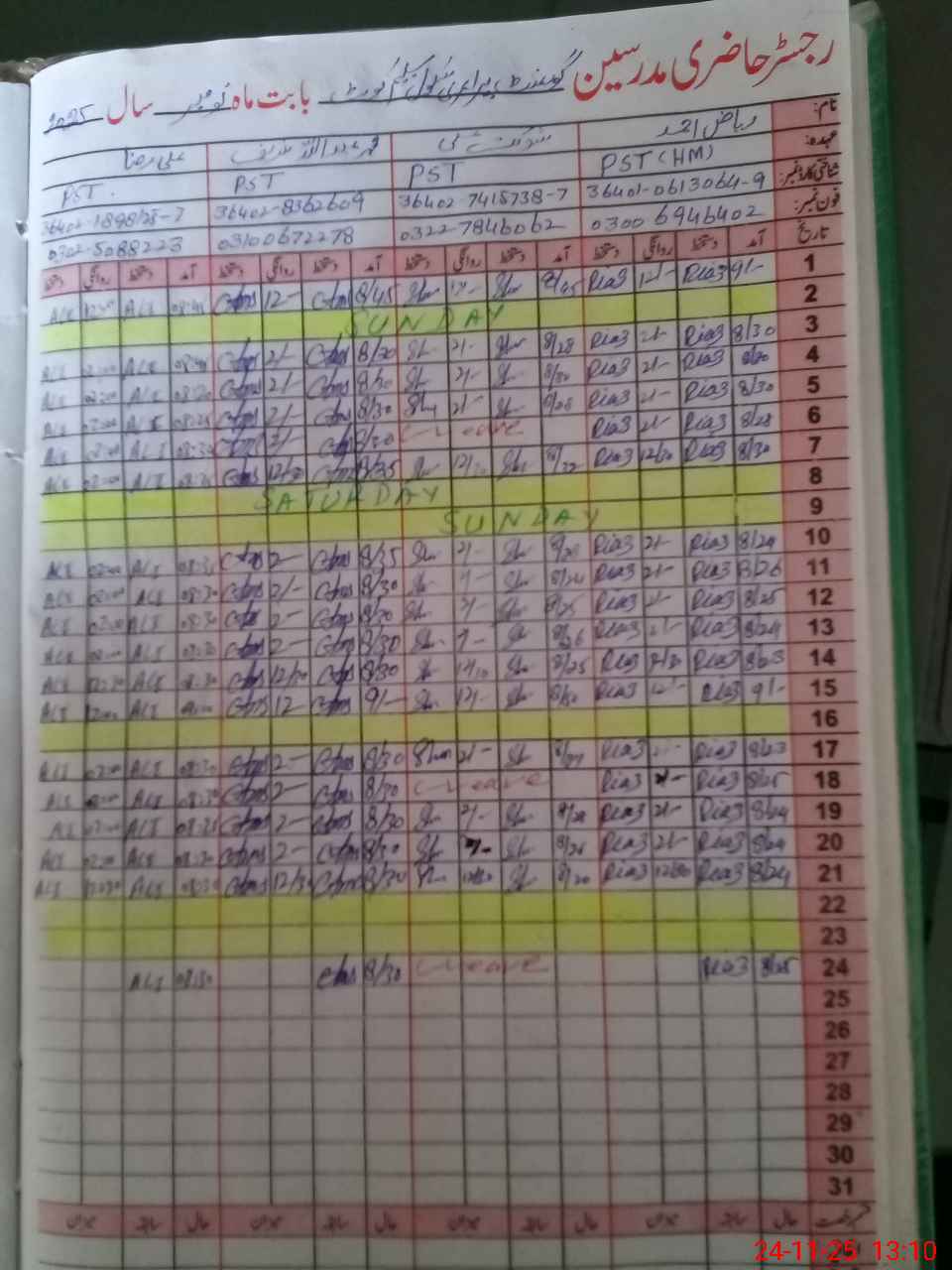 | Name: RI**** AH**** Designation: (School Headmaster's/Headmistress's) PST Phone/Cell Number: 03**** |