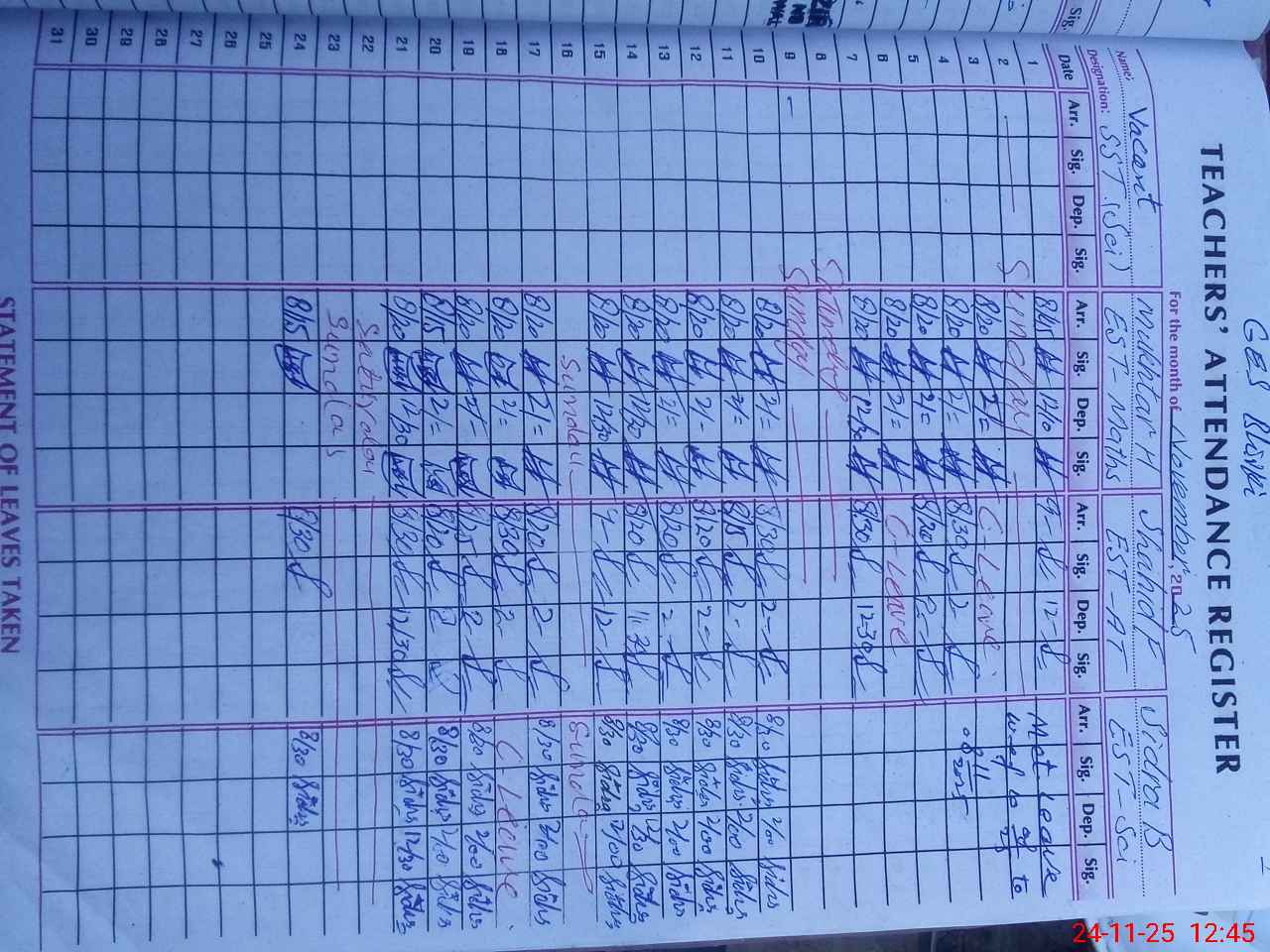 | Name: Kh**** Ma**** Designation: (School Headmaster's/Headmistress's) SST (Science ) Phone/Cell Number: 03**** |