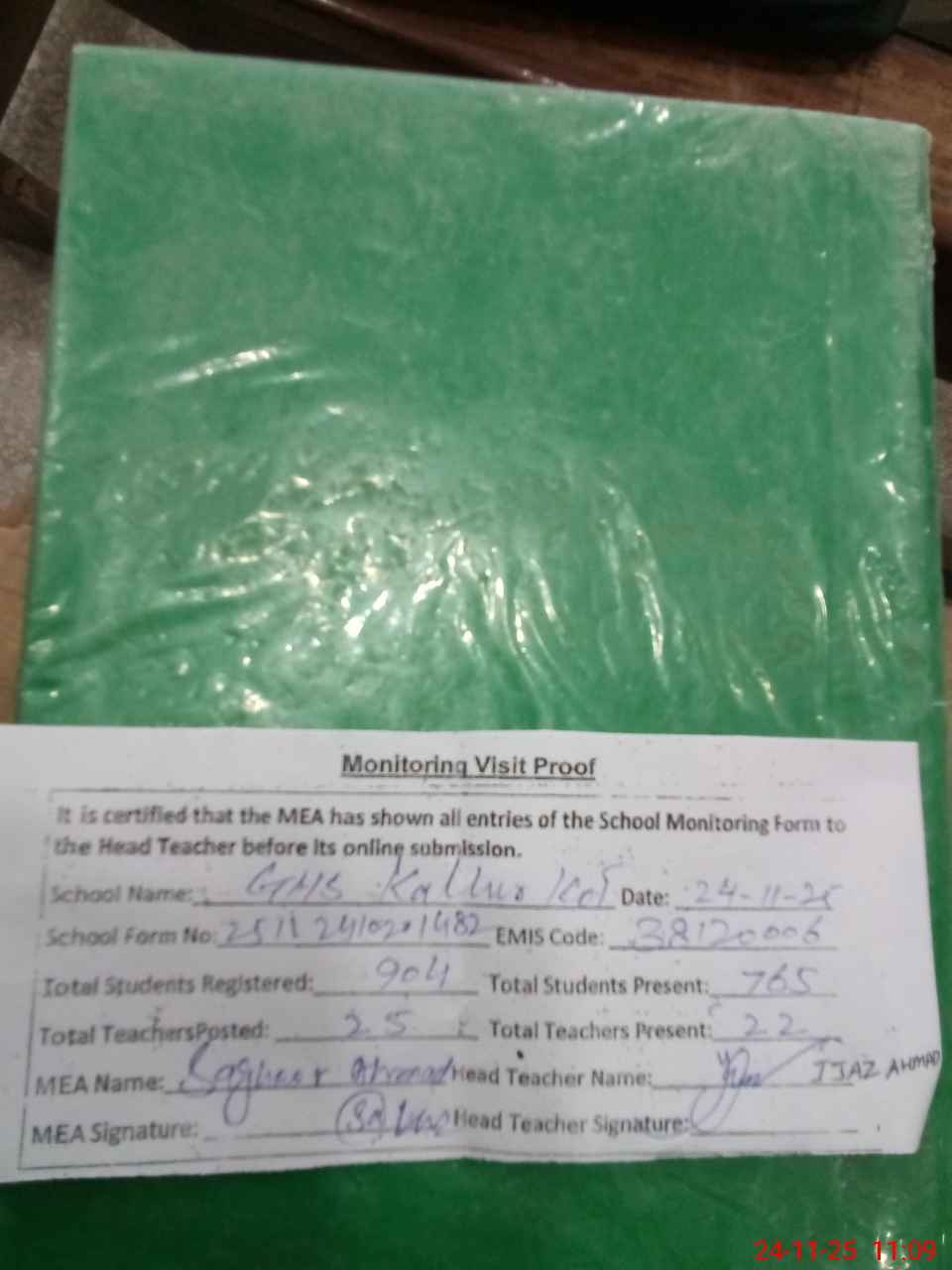| Attendance Register | Head Teacher | MEA with School | Visit Proof |