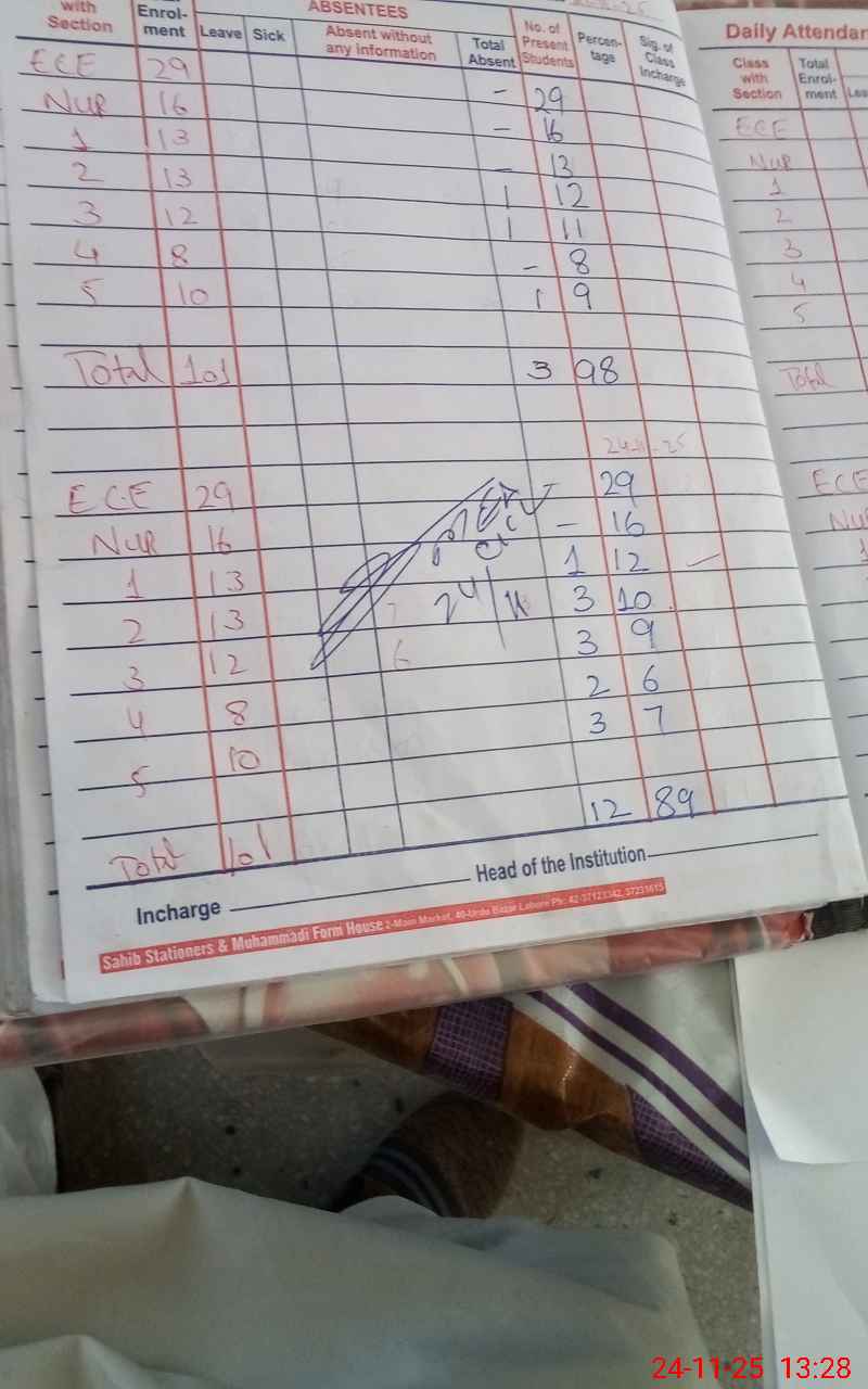 | Attendance Register | Head Teacher | MEA with School | Visit Proof |