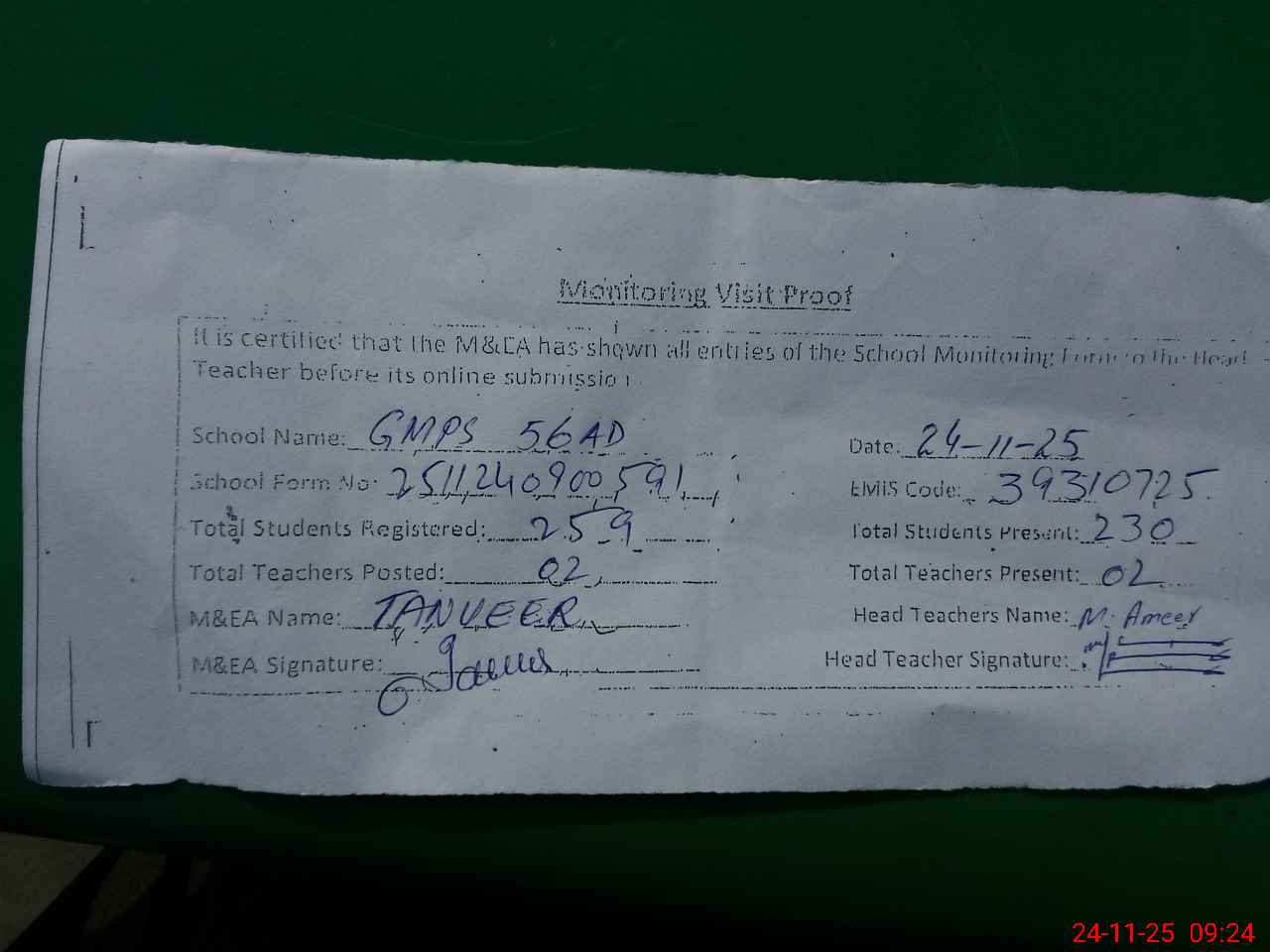 | EMIS Code: 39310725 | Name of School: GMPS CHAK NO. 56/AD | |||
