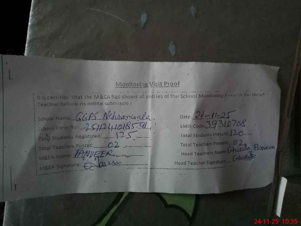 | EMIS Code: 39310708 | Name of School: GGPS NAHRAN WALA | |||