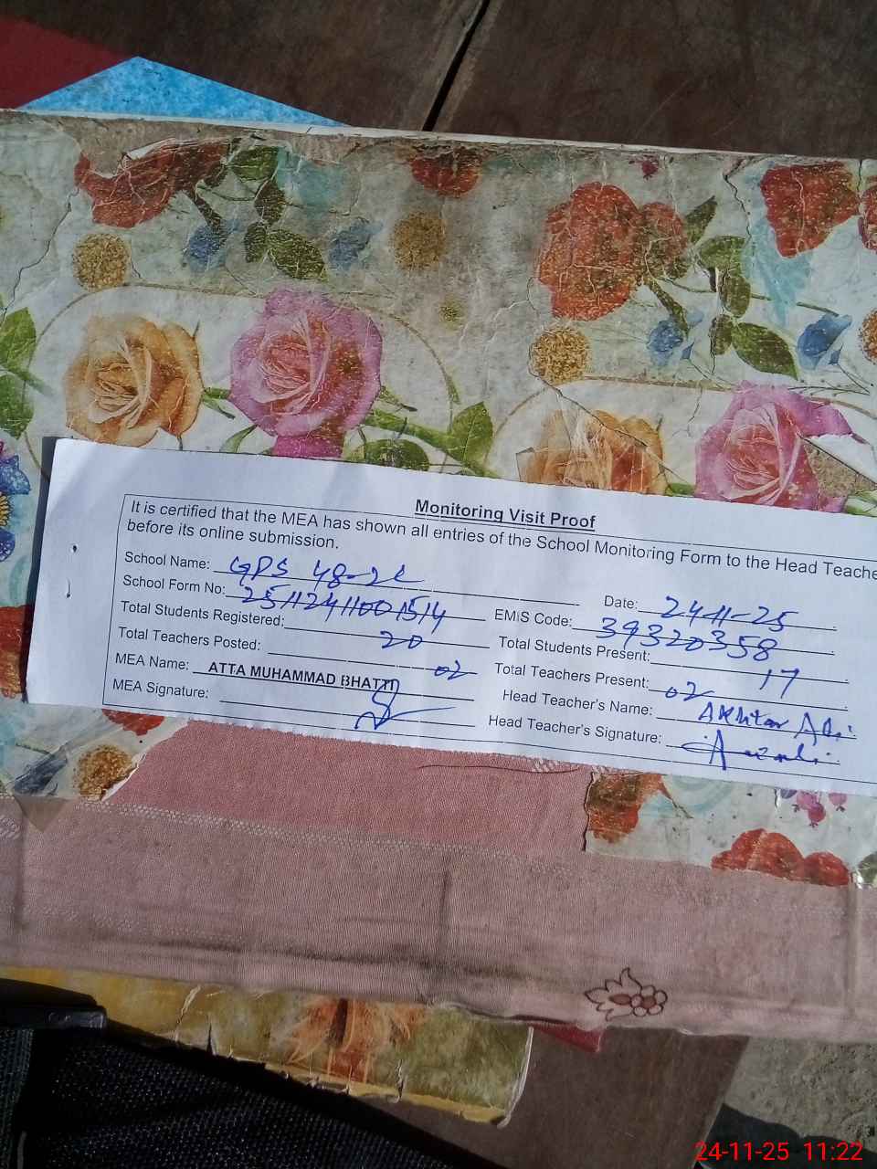| Certified that this School was Inspected by the Undersigned MEA/DMO Today and the Information Stated Above is as Per Record. | |||||
