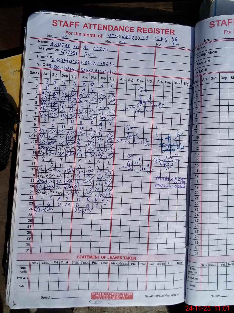 | Name: Ak**** Al**** Designation: (School Headmaster's/Headmistress's) PST Phone/Cell Number: 03**** |