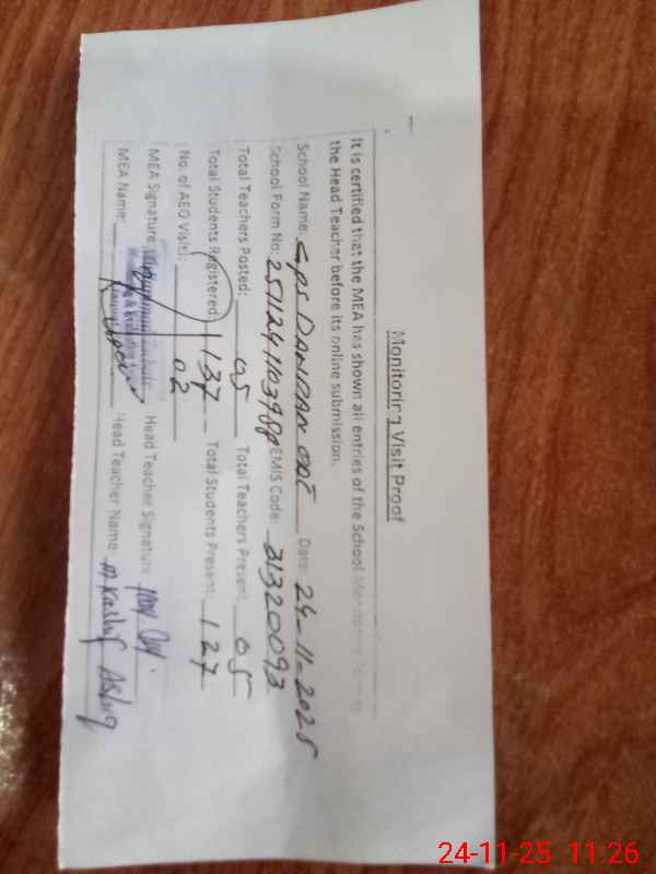 | Attendance Register | Head Teacher | MEA with School | Visit Proof |