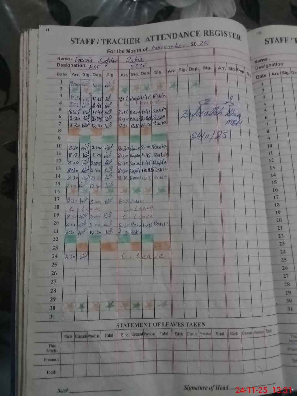 | 38**** | Ka**** Pa**** | PST | Regular | 0 | 0 | 0 | 0 | 0 | 0 | 0 | 0 | 0 | Absent (Un-Authorized) |