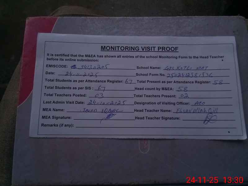 | EMIS Code: 34130205 | Name of School: GPS KOTLI MATWALIAN | |||