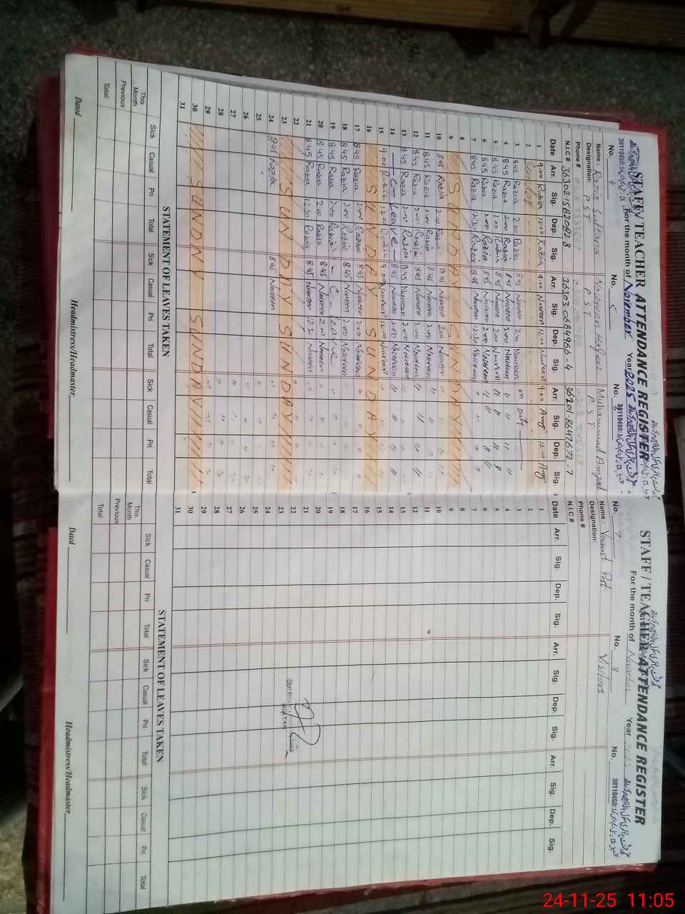 | CNIC | Full Name | Designation | R/C | Absence During Last Calender Month |