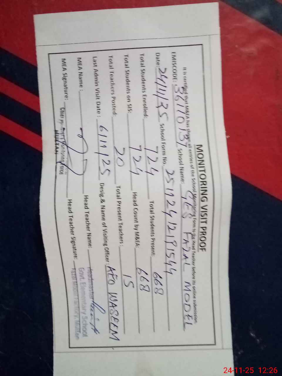 | Certified that this School was Inspected by the Undersigned MEA/DMO Today and the Information Stated Above is as Per Record. | |||||