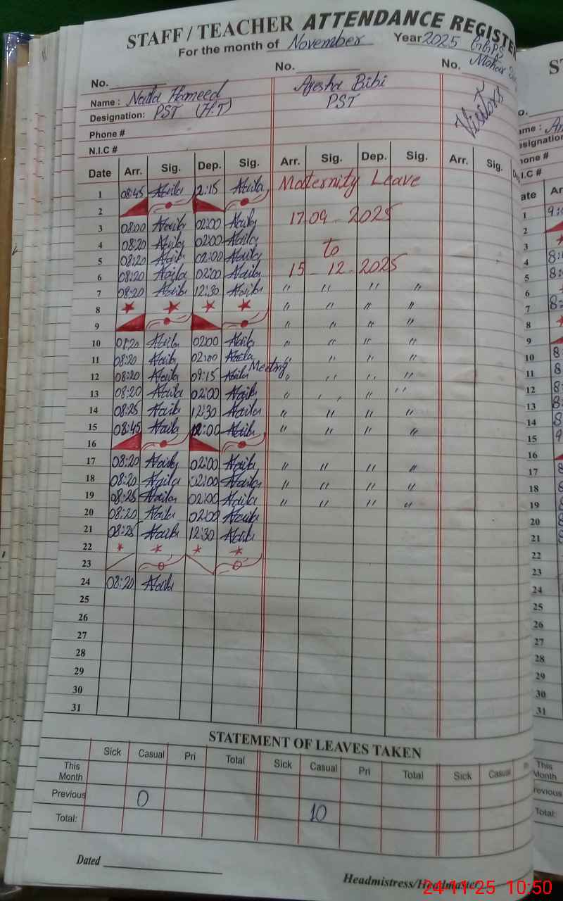 | 35**** | Ay**** Bi**** | Regular | 31 | 0 | 0 | 31 | 0 | 0 | 0 | 0 | 0 | Maternity | |