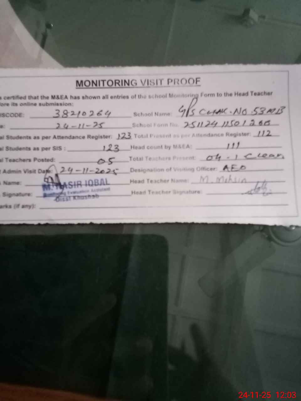 | Attendance Register | Head Teacher | MEA with School | Visit Proof |