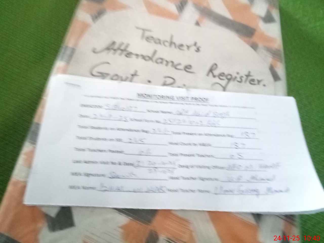 | Attendance Register | Head Teacher | MEA with School | Visit Proof |