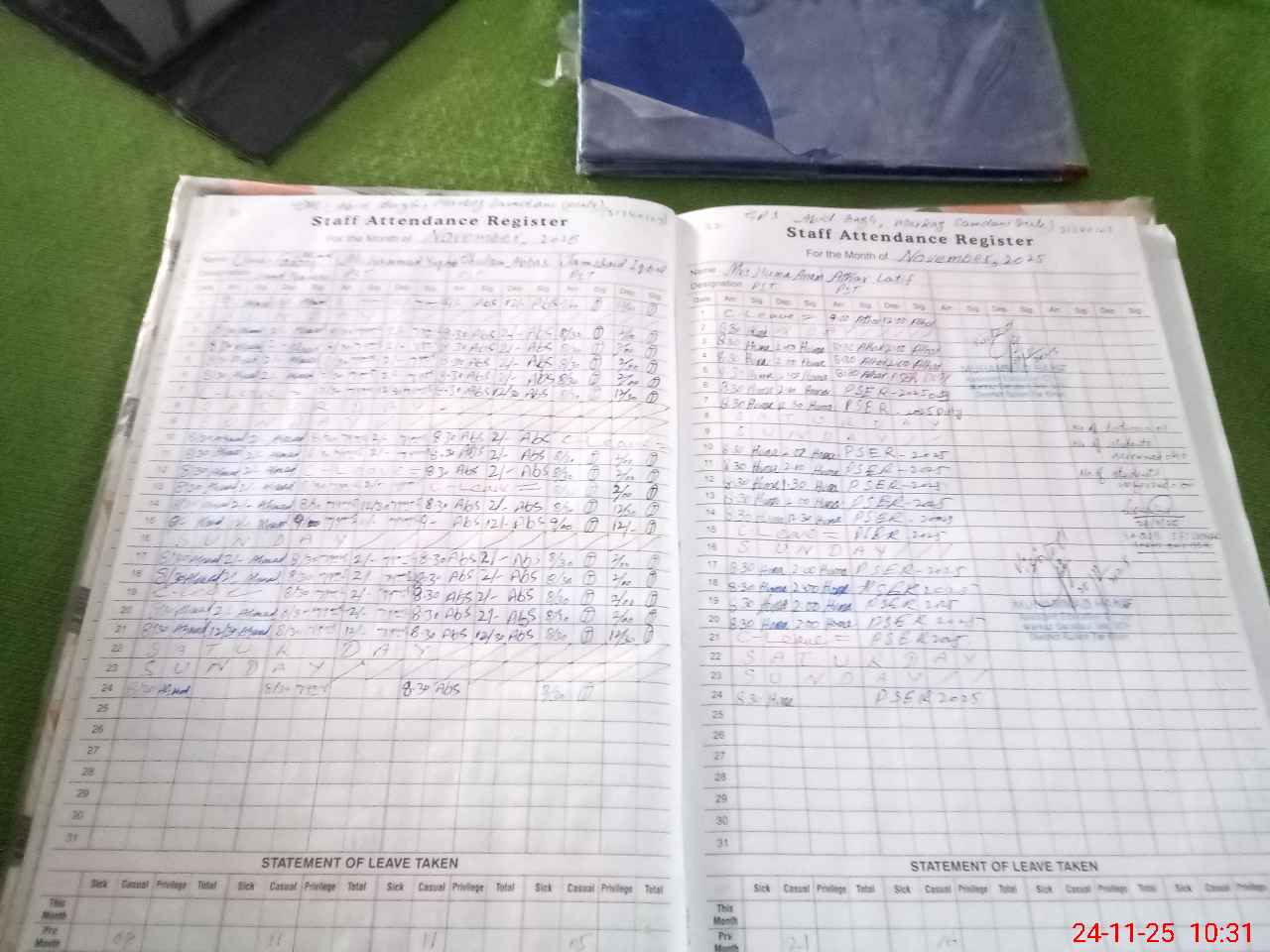 | Leave | Duty | Absent | Maternity | Medical | Ex- Pak |