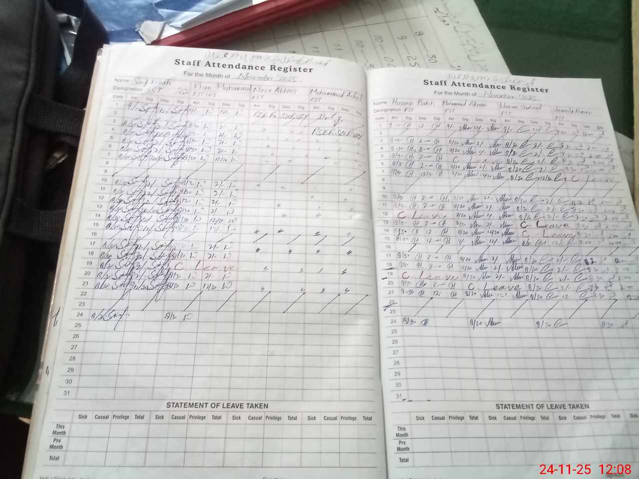| CNIC | Full Name | Designation | R/C | Absence During Last Calender Month |