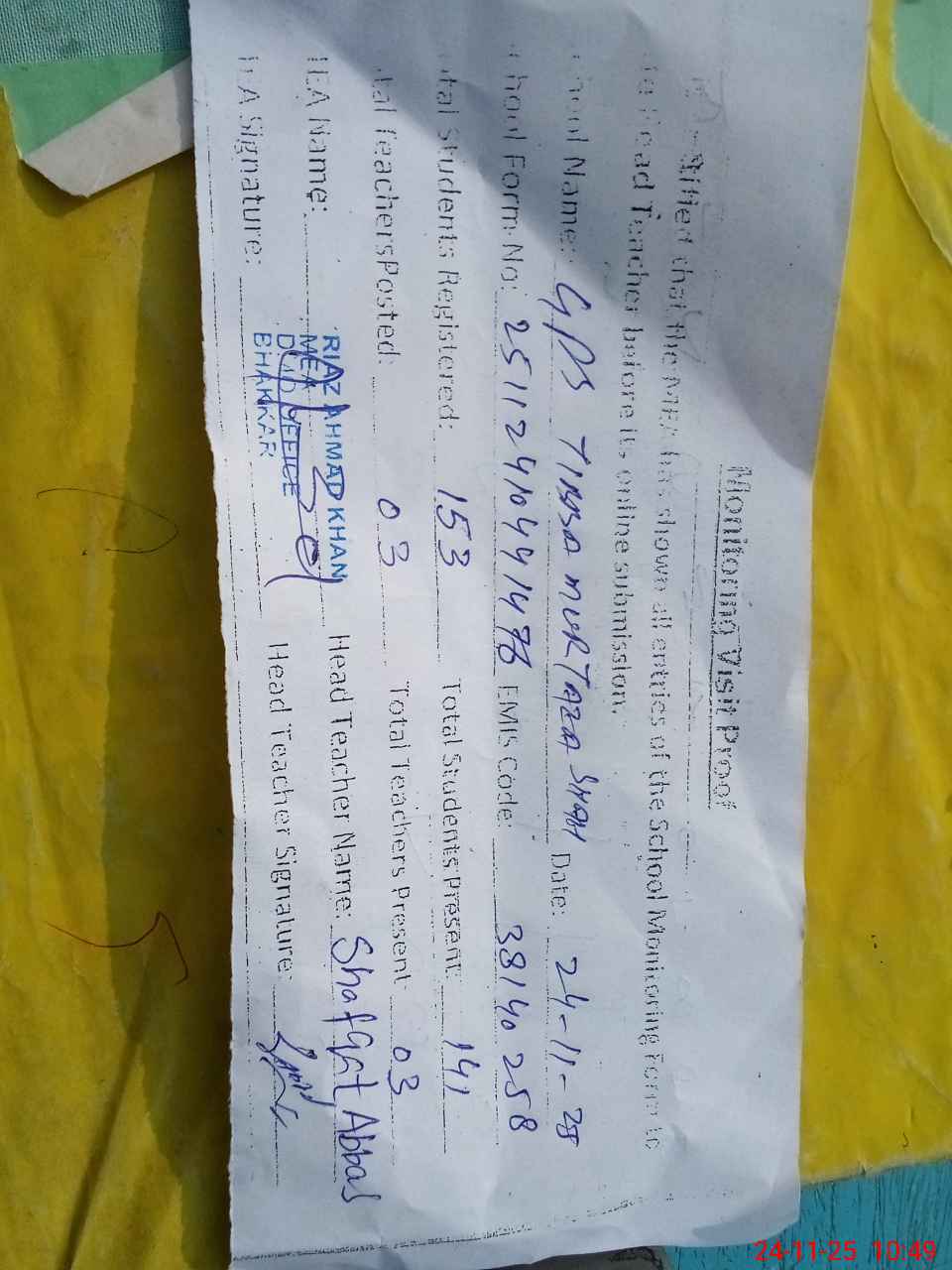 | Attendance Register | Head Teacher | MEA with School | Visit Proof |