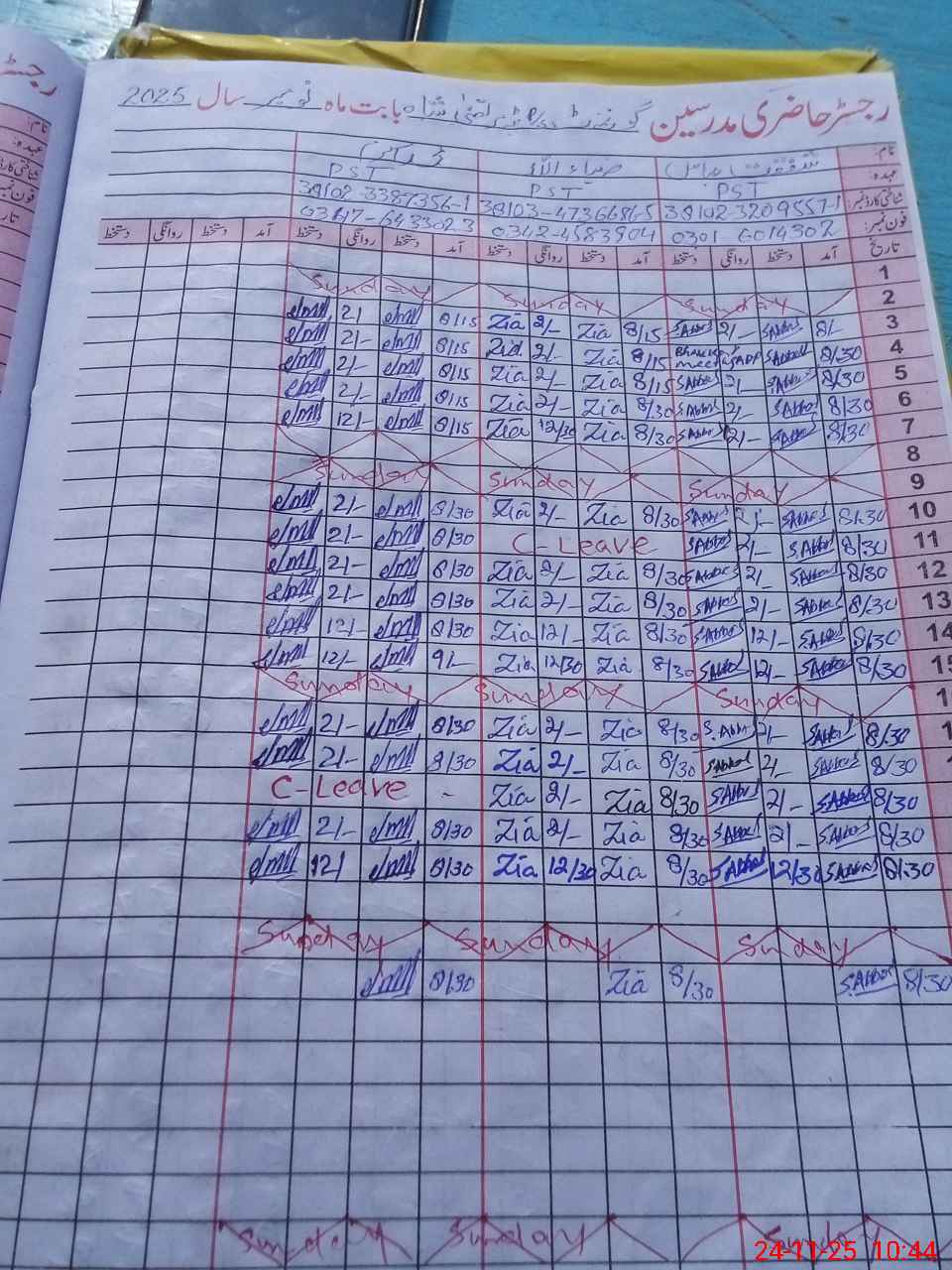 | Name: Sh**** Ab**** Designation: (School Headmaster's/Headmistress's) PST Phone/Cell Number: 03**** |