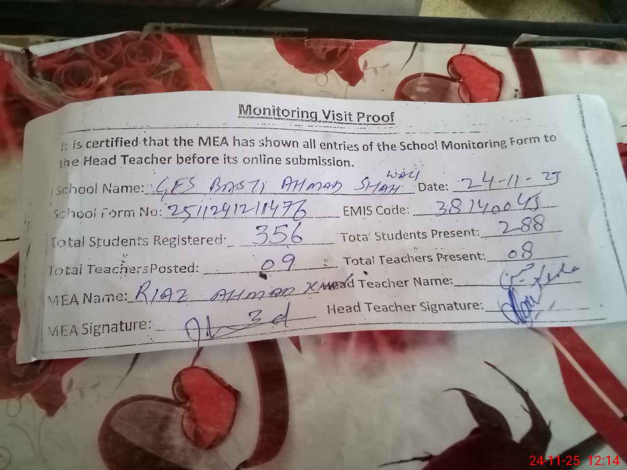 | EMIS Code: 38140045 | Name of School: GES BASTI AHMAD SHAH WALI | |||
