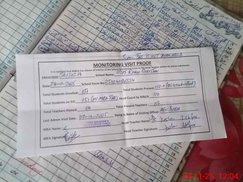 | Attendance Register | Head Teacher | MEA with School | Visit Proof |