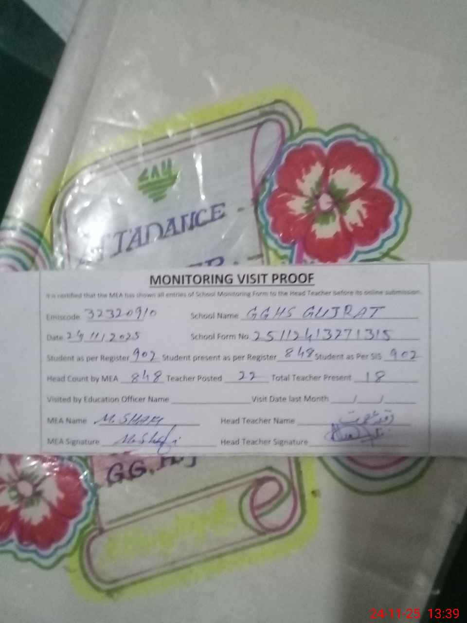 | EMIS Code: 32320910 | Name of School: GGHS GUJRAT | |||