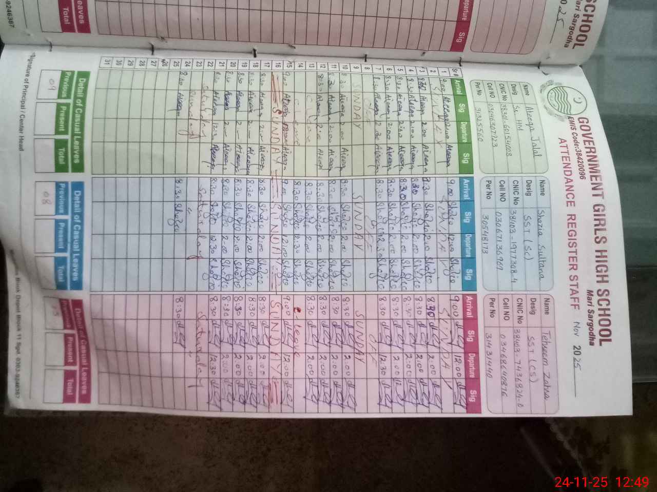 | Name: At**** Ja**** Designation: (School Headmaster's/Headmistress's) Sr. HEADMISTRESS Phone/Cell Number: 03**** |