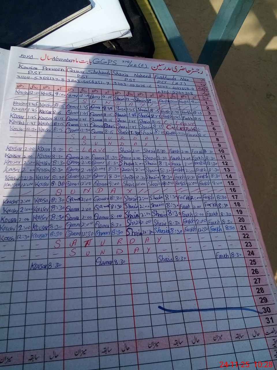 | CNIC | Full Name | Designation | R/C | Absence During Last Calender Month |