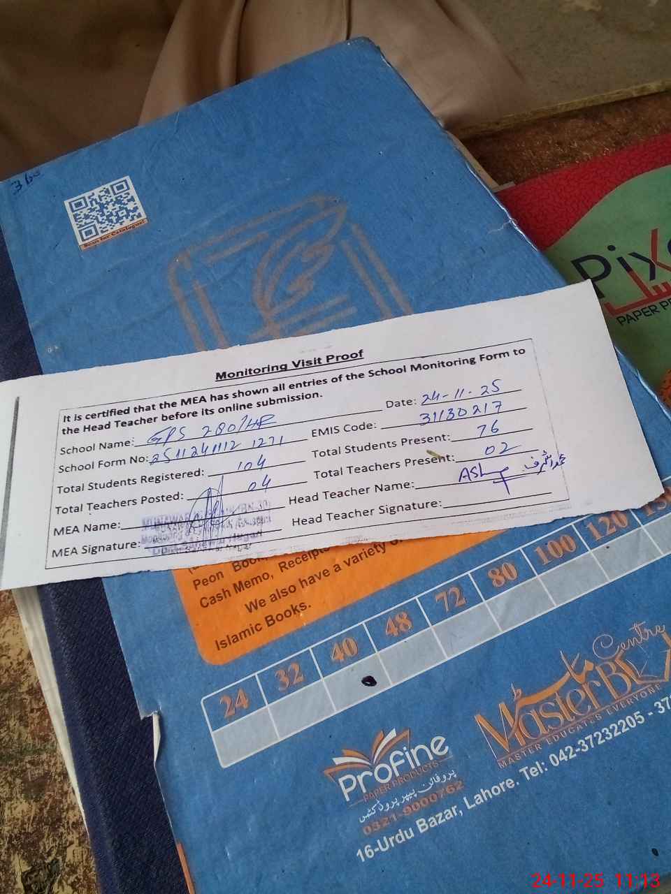 | EMIS Code: 31130217 | Name of School: GPS CHAK NO 280 HR | |||