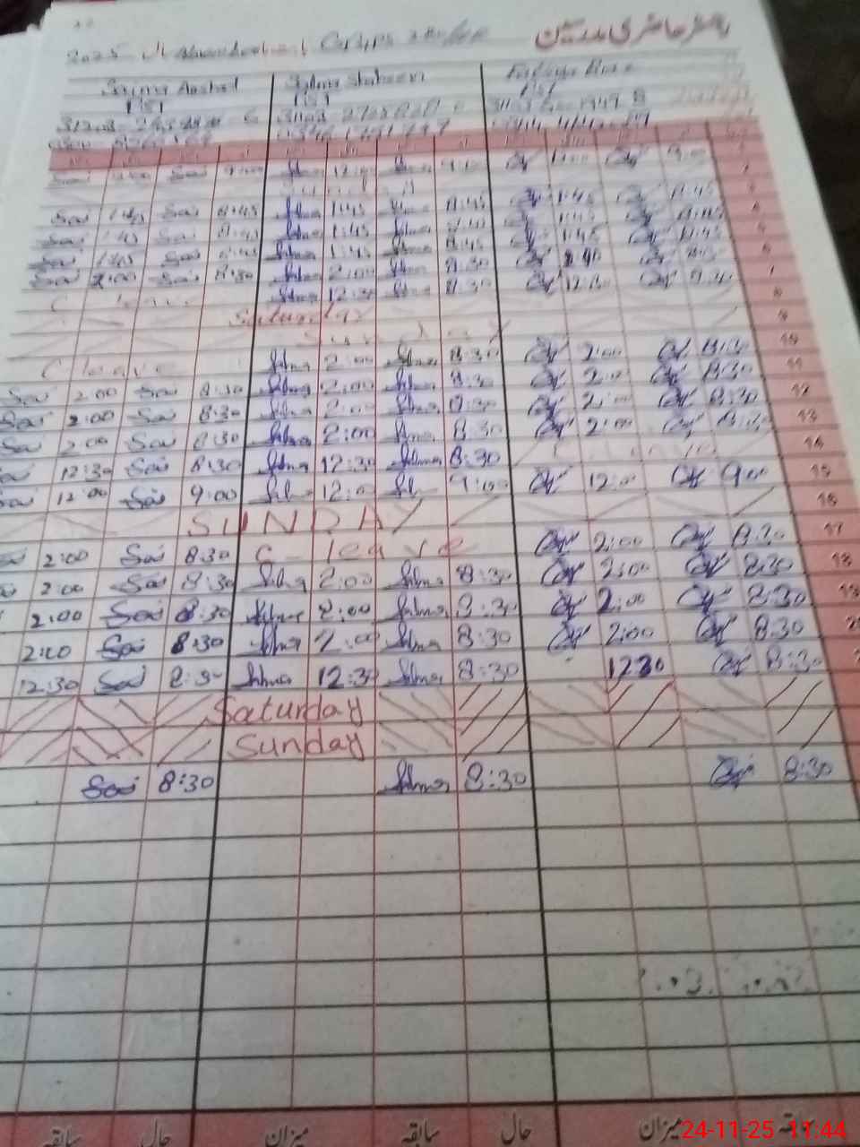 | CNIC | Full Name | Designation | R/C | Absence During Last Calender Month |
