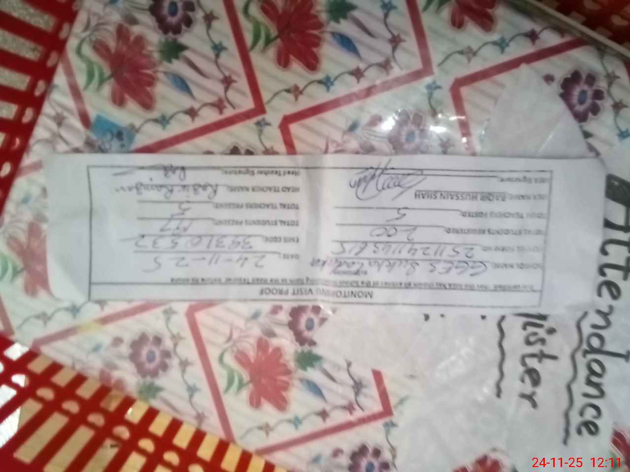 | Attendance Register | Head Teacher | MEA with School | Visit Proof |