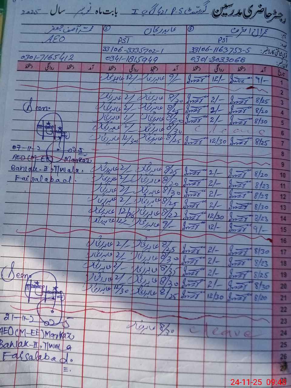| Name: IF**** AH**** Designation: (School Headmaster's/Headmistress's) PST Phone/Cell Number: 03**** |