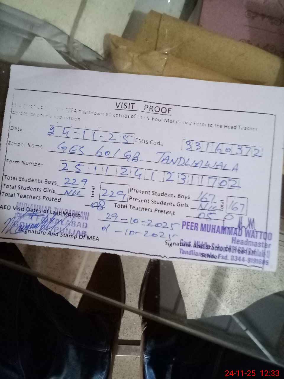 | EMIS Code: 33160372 | Name of School: GES CHAK NO.601/GB | |||