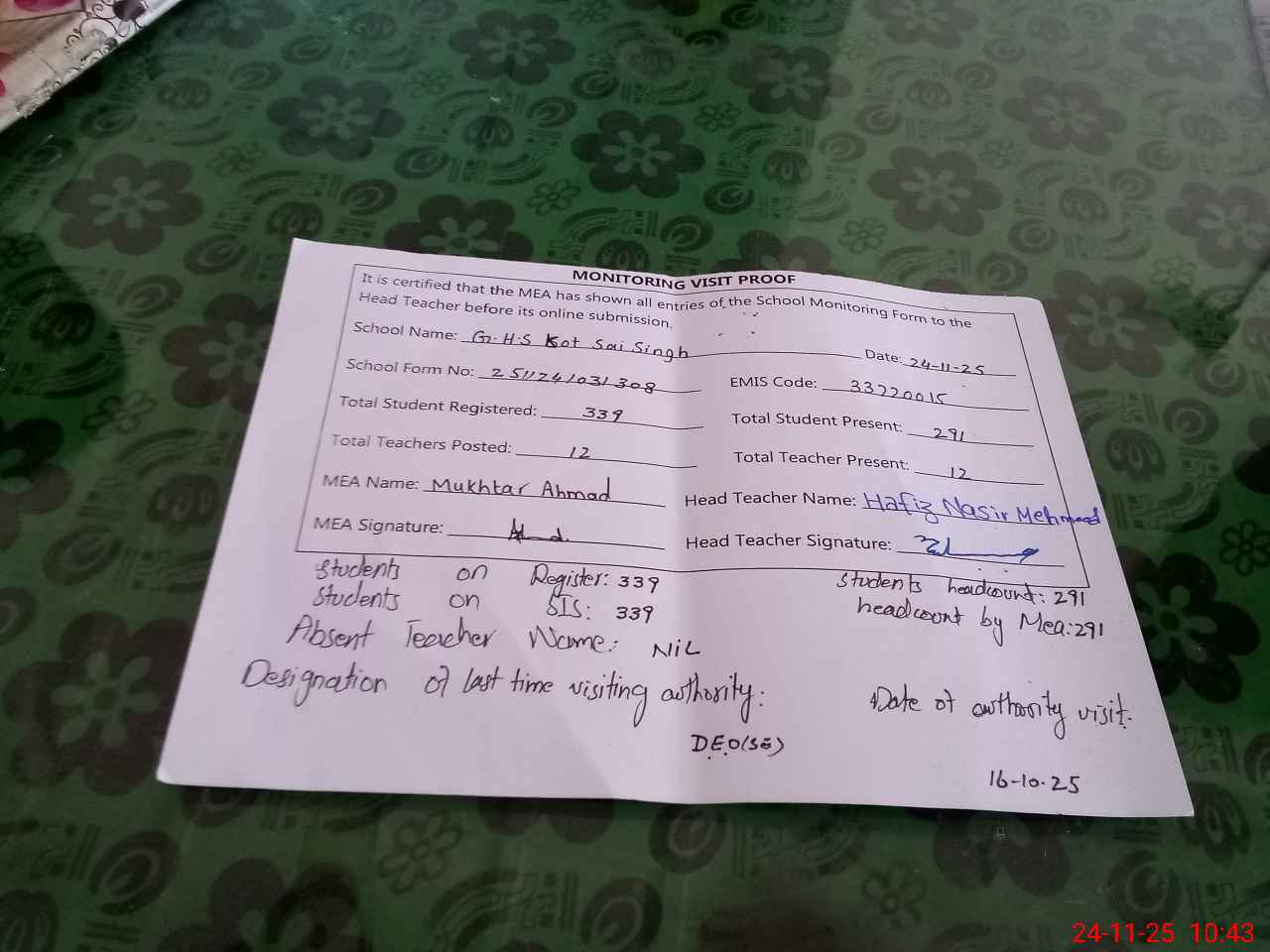 | EMIS Code: 33220015 | Name of School: GHS KOT SAI SINGH | |||