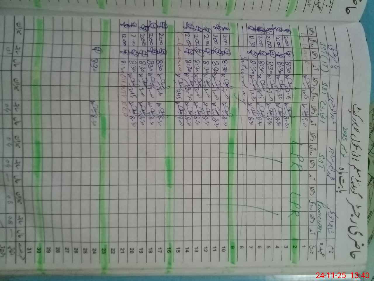 | CNIC | Full Name | Designation | R/C | Absence during last cal. month |