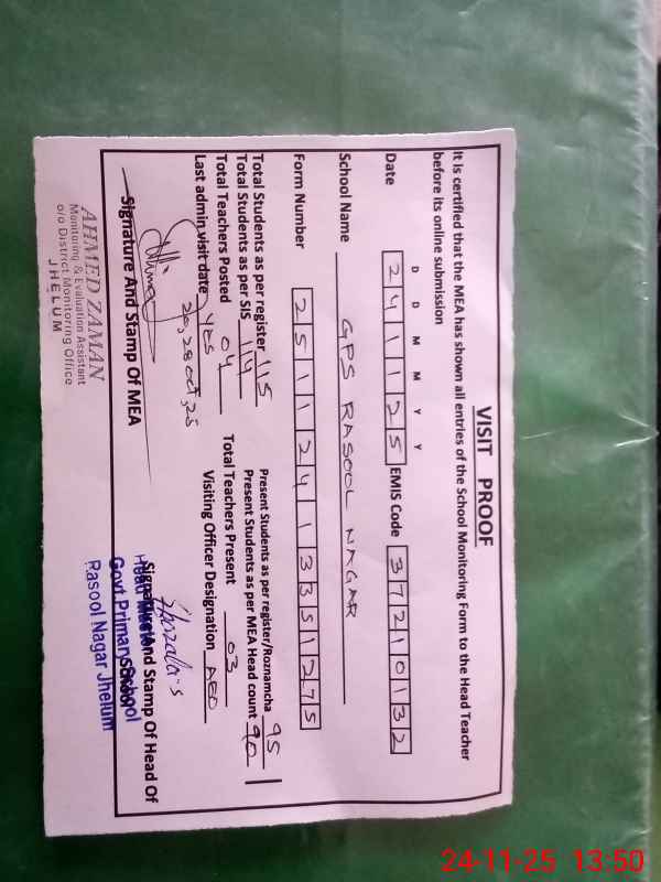 | EMIS Code: 37210132 | Name of School: GPS RASOOL NAGAR | |||