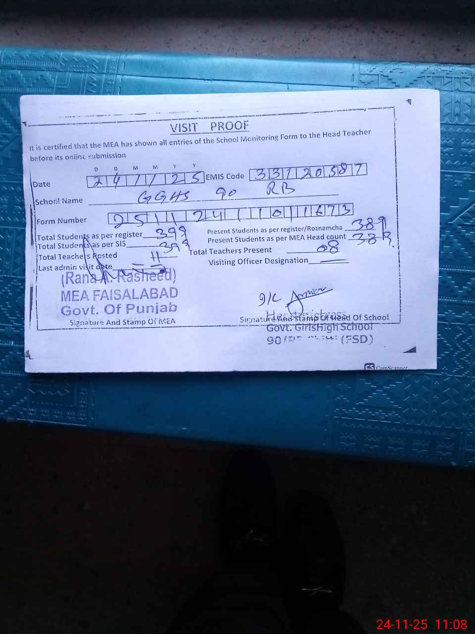| EMIS Code: 33120587 | Name of School: GGHS CHAK 90 RB KHURRIANWALA | |||