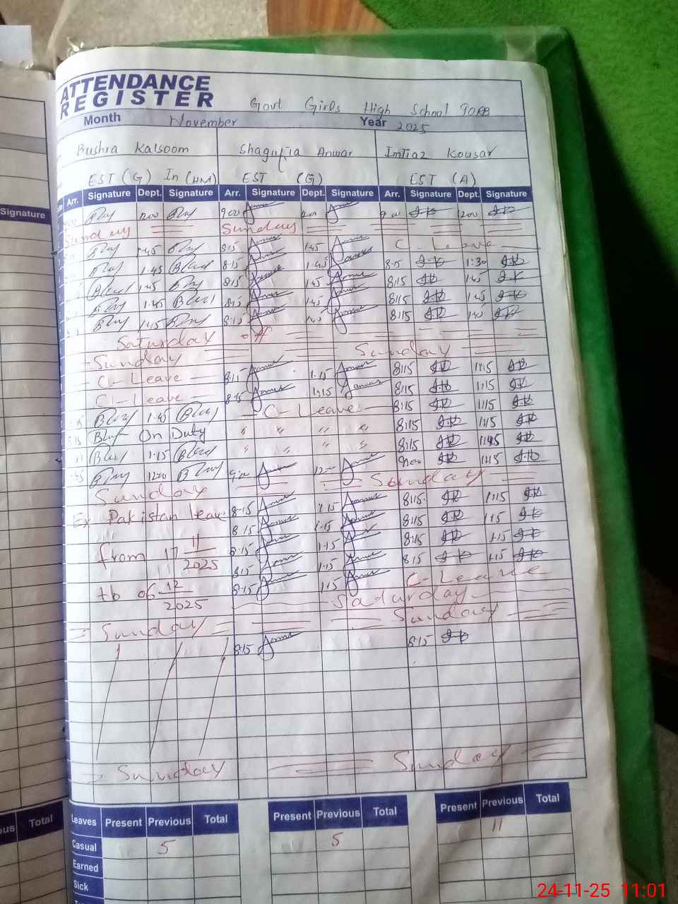 | 33**** | Sh**** Mu**** Al**** | PST | Regular | 3 | 0 | 0 | 0 | 0 | 0 | 0 | 0 | 3 | Casual |