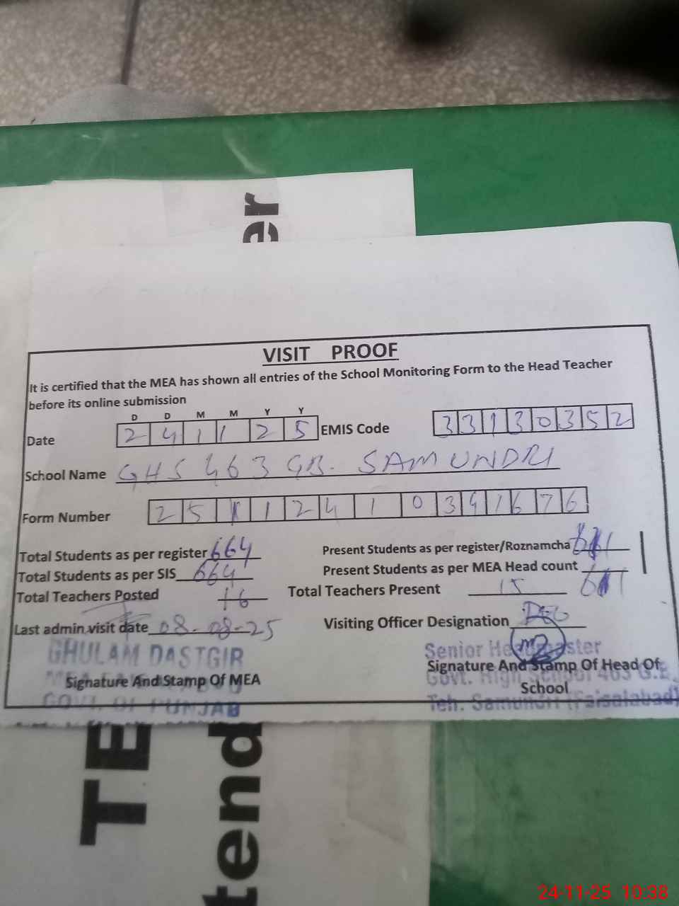 | EMIS Code: 33130352 | Name of School: GHS CHAK 463 GB SAMUNDRI FSD | |||
