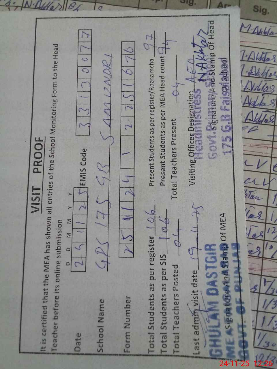 | EMIS Code: 33130077 | Name of School: GPS CHAK 175 GB SAMUNDRI | |||