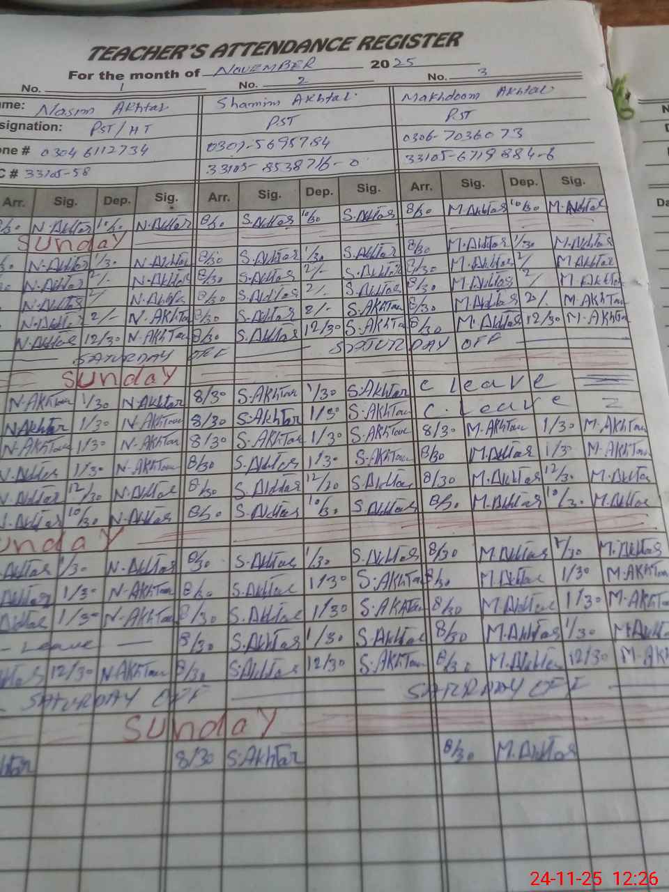 | Name: NA**** AK**** Designation: (School Headmaster's/Headmistress's) PST Phone/Cell Number: 03**** |