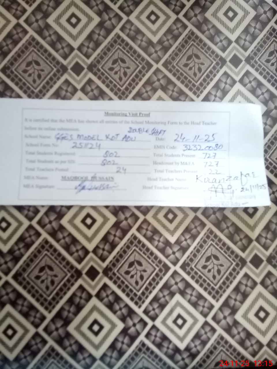| EMIS Code: 32320080 | Name of School: GGES MODEL KOT ADU DOUBLE SHIFT | |||