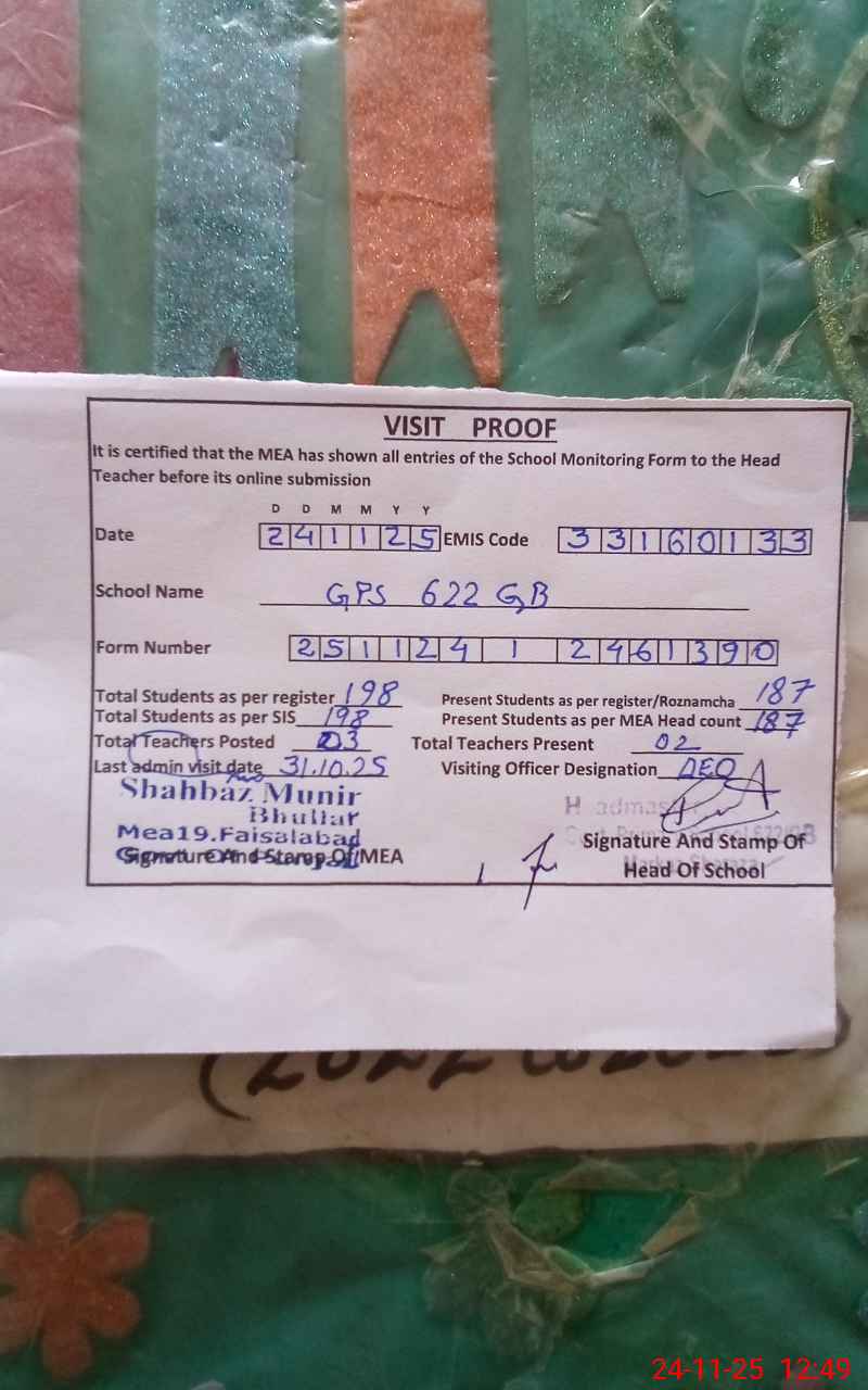 | EMIS Code: 33160133 | Name of School: GPS CHAK 622 GB TANDLIANWALA | |||