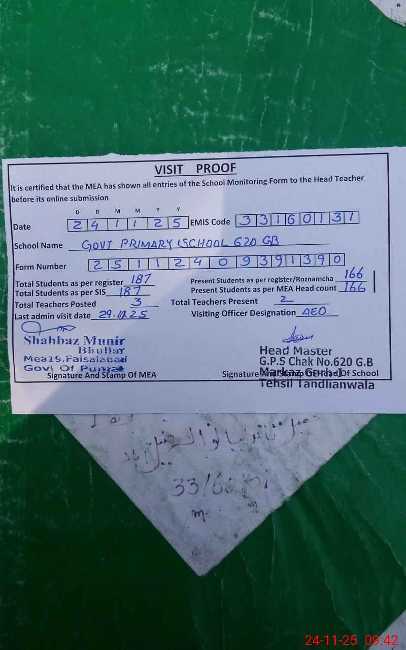 | EMIS Code: 33160131 | Name of School: GPS CHAK 620 GB TANDLIANWALA | |||