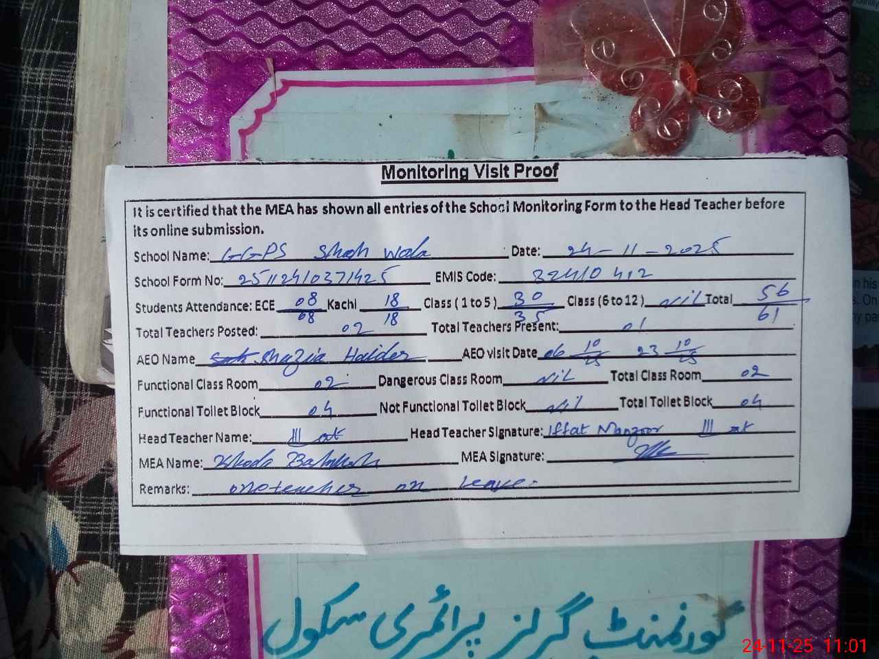 | EMIS Code: 32410412 | Name of School: GGPS SHAH WALA | |||