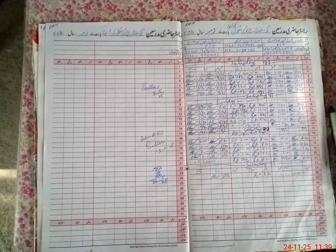 | CNIC | Full Name | Designation | R/C | Absence During Last Calender Month |