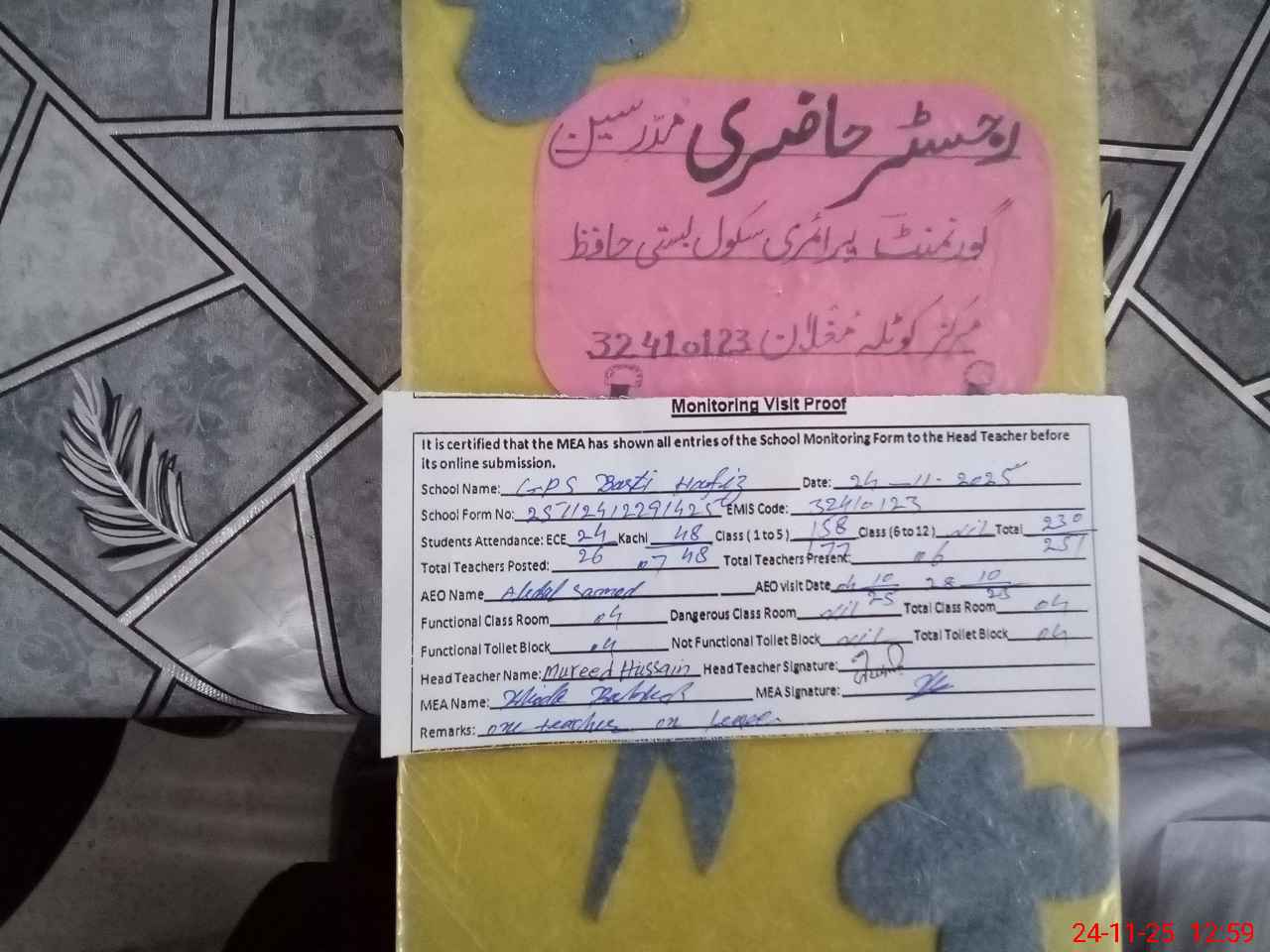 | EMIS Code: 32410123 | Name of School: GPS BASTI HAFIZ | |||