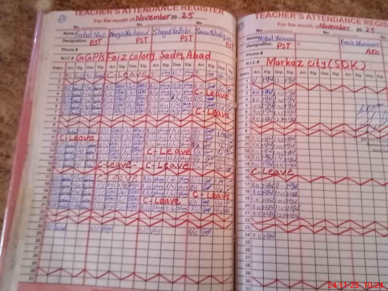 | CNIC | Full Name | Designation | R/C | Absence During Last Calender Month |