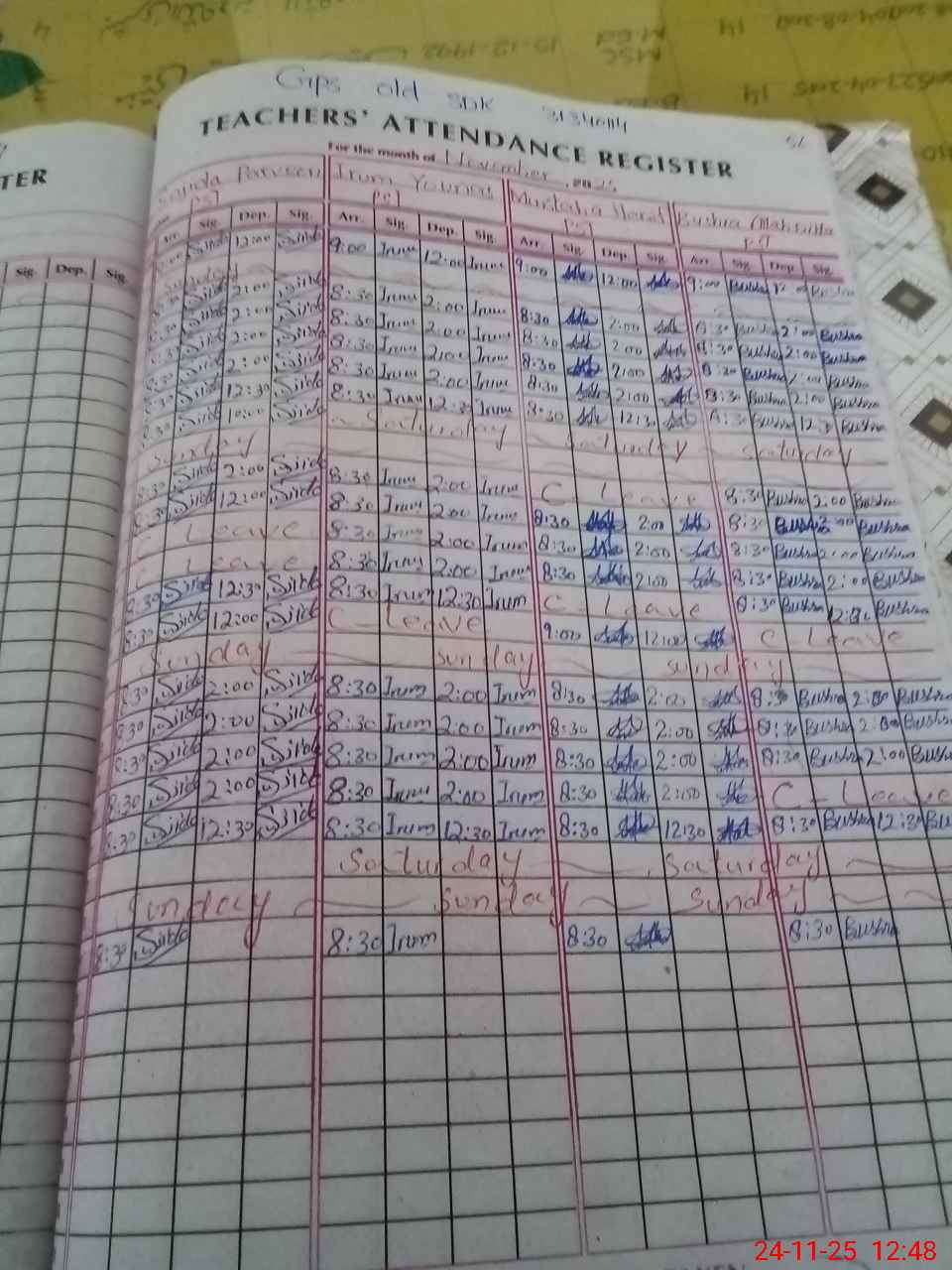 | CNIC | Full Name | Designation | R/C | Absence During Last Calender Month |